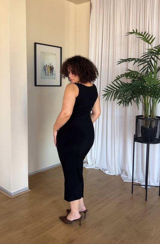 XL | Black Long-sleeved Sculpted Dress: Tall
