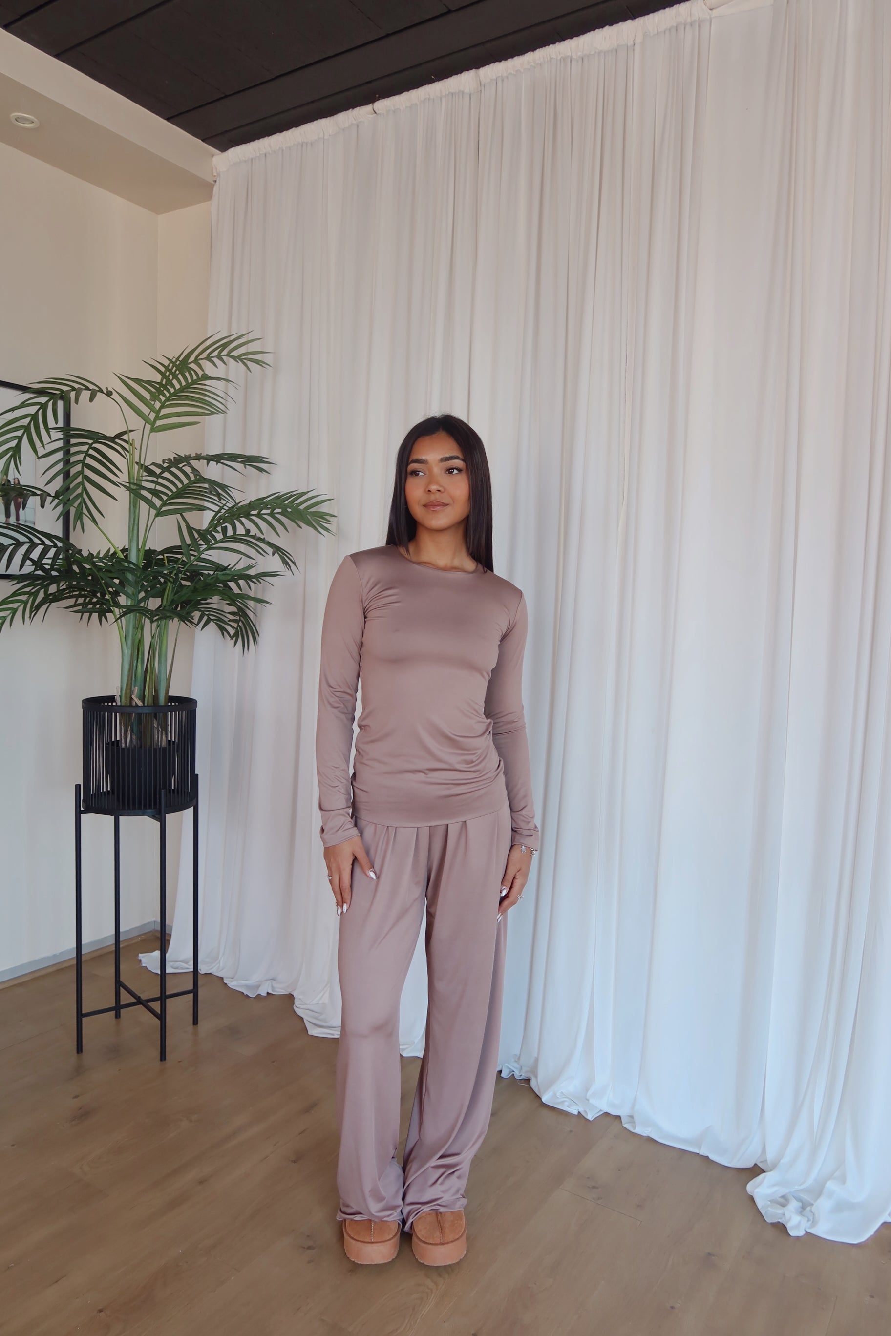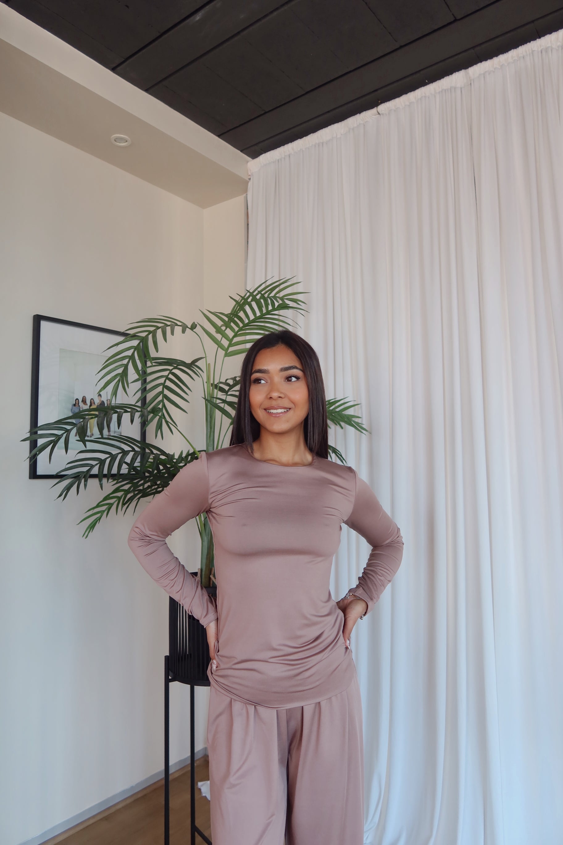Size up for a cosy sleepwear fit or pick your true size for a comfortable, but body-hugging fit. Aqeelah wears size S.