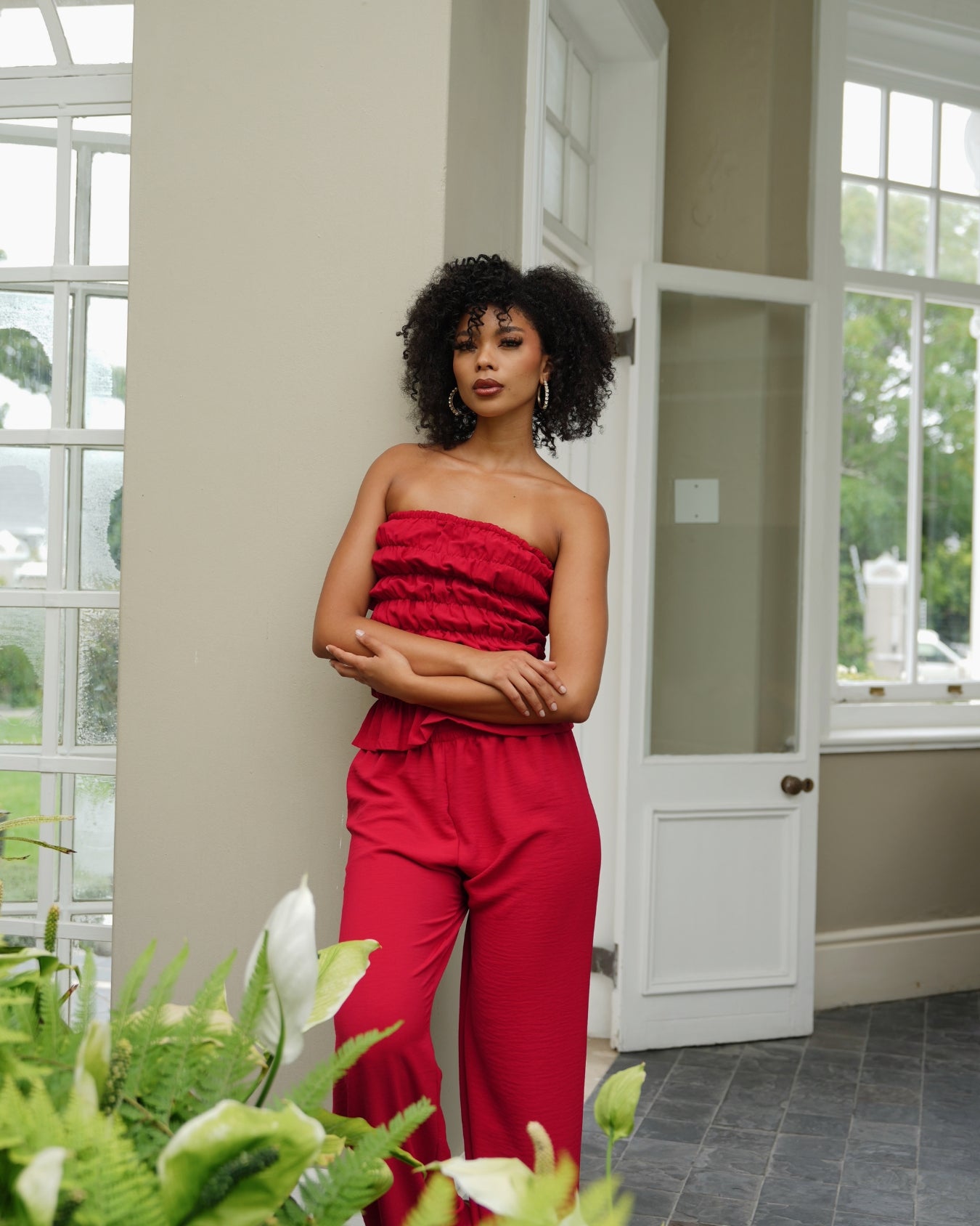 M | Red Crinkle Straight Leg Resort Pants
